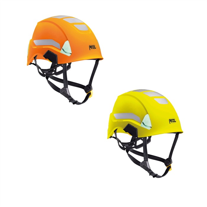 Der sehr leichte STRATO-Helm bietet guten Tragekomfort dank der CENTERFIT- und FLIP&FIT-Systeme, die für einen ausgezeichneten Halt des Helms auf dem Kopf sorgen. Dank seines Kinnbands mit anpassbarer Haltekraft ist er sowohl für Arbeiten in der Höhe als auch am Boden geeignet. Die geschlossene Außenschale bietet Schutz vor elektrischer Gefährdung, Spritzern aus schmelzflüssigem Metall und Flammen. Die optimale Integration einer Petzl-Stirnlampe, eines Visiers, von standardmäßigem Gehörschutz und zahlreichen Zubehören machen ihn zu einem modularen Helm, der die zusätzlichen Anforderungen professioneller Anwender erfüllt. Die hochsichtbare Ausführung verfügt über eine Helmschale in Leuchtfarbe mit phosphoreszierenden Clips und reflektierenden Streifen für eine optimale Sichtbarkeit des Benutzers bei Tag und bei Nacht.